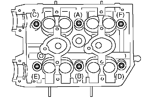 2. Tighten all bolts to 29 Nm (3.0 kgf-m, 21.4 ft. lbs.) in alphabetical sequence.