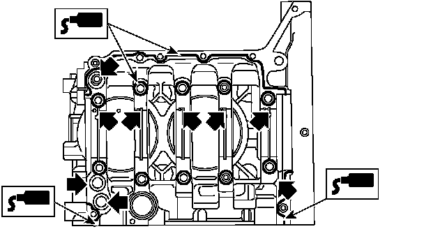 3. Apply liquid gasket to the mating surface of #1 and #3 cylinder block, and position it on #2 and #4 cylinder block.