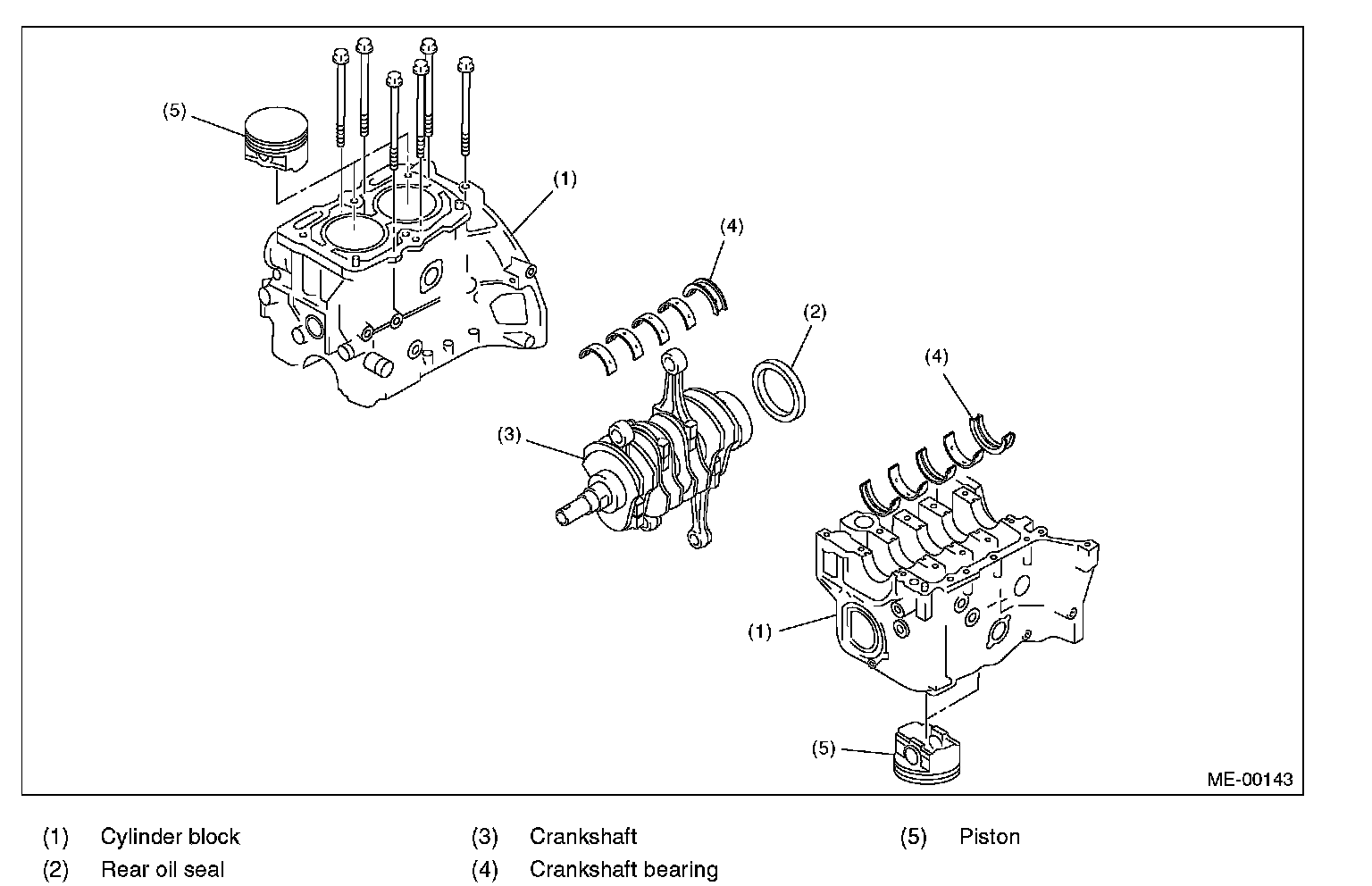 1. Remove oil on the mating surface of bearing and cylinder block before installation. Apply a coat of engine oil to crankshaft pins.
