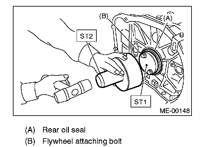 12. Remove the drive plate. (AT model) To lock crankshaft, use ST.