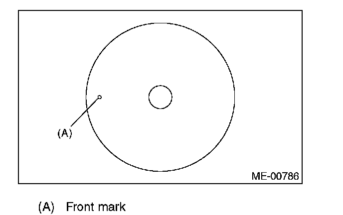 ^ Marks are displayed on the end of top and second rings. When installing the rings to the piston, face those marks upward.