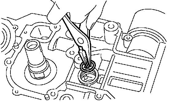 19. Install the snap ring. Install snap rings in the piston holes located opposite to the service holes in cylinder block, when positioning all pistons in the corresponding cylinders.
