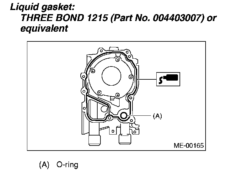 Liquid gasket: THREE BOND 1215 (Part No. 004403007) or equivalent