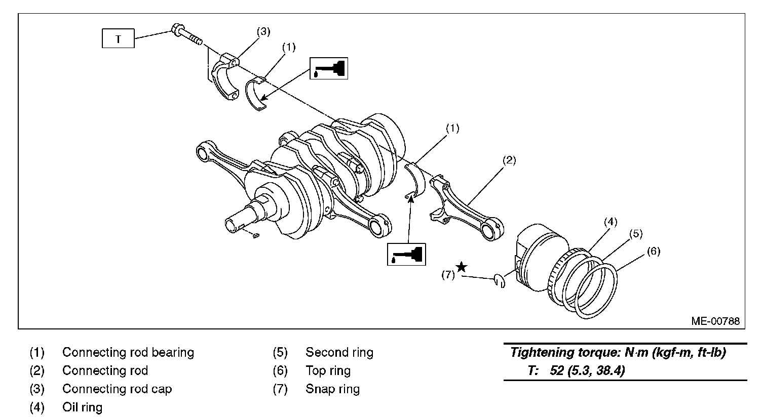 ^ When tightening the connecting rod nuts, apply oil on the threads.