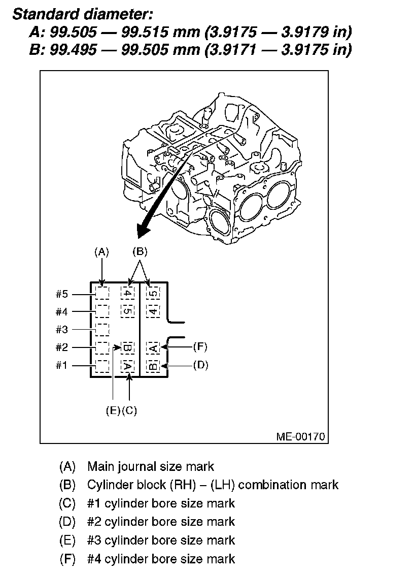1. The cylinder bore size is stamped on the cylinder block's front upper surface.