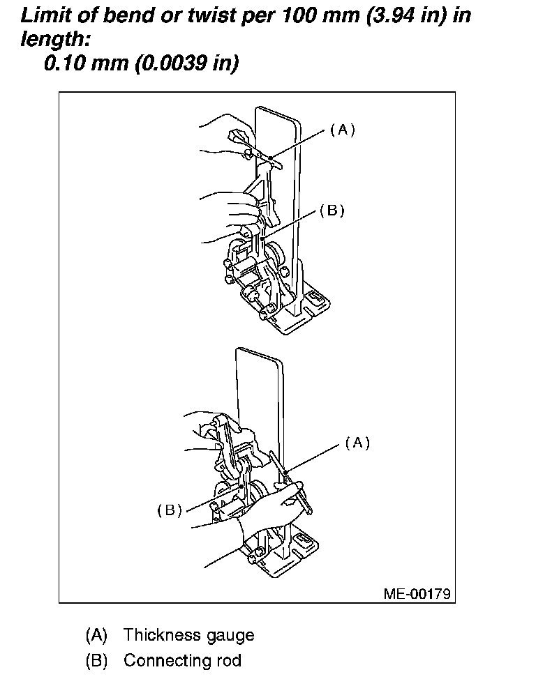 2. Check for bend or twist using a connecting rod aligner. Replace the connecting rod if the bend or twist exceeds the limit.