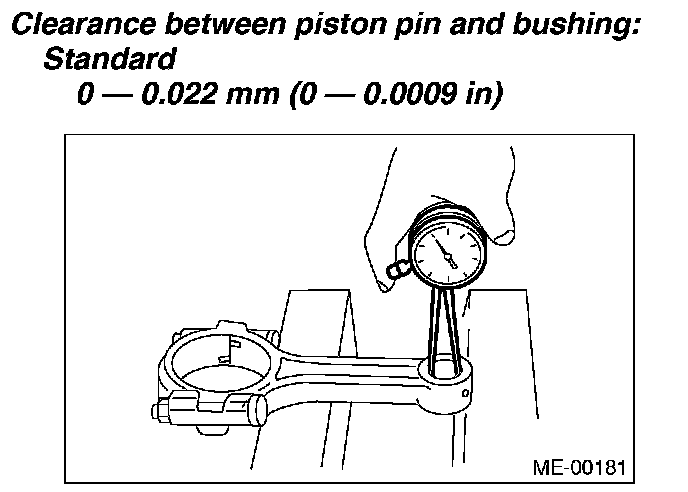 6. Inspect the bushing at connecting rod small end, and replace if worn or damaged. Also measure the piston pin clearance at the connecting rod small end.