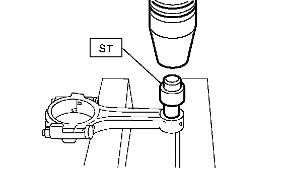 1 Apply a coat of engine oil to ST3 before insertion, and then insert it into the service hole to align piston pin hole with connecting rod small end.