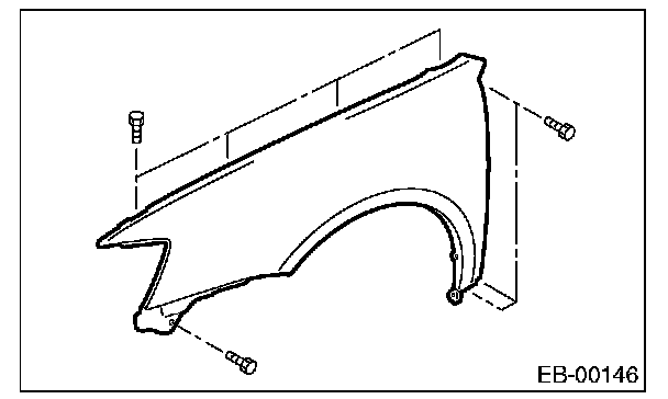 2. Install with attention to make uniform clearance between front fender panel and front hood panel. For the dimension of clearance, refer to "SPECIFICATION" in "General Description".