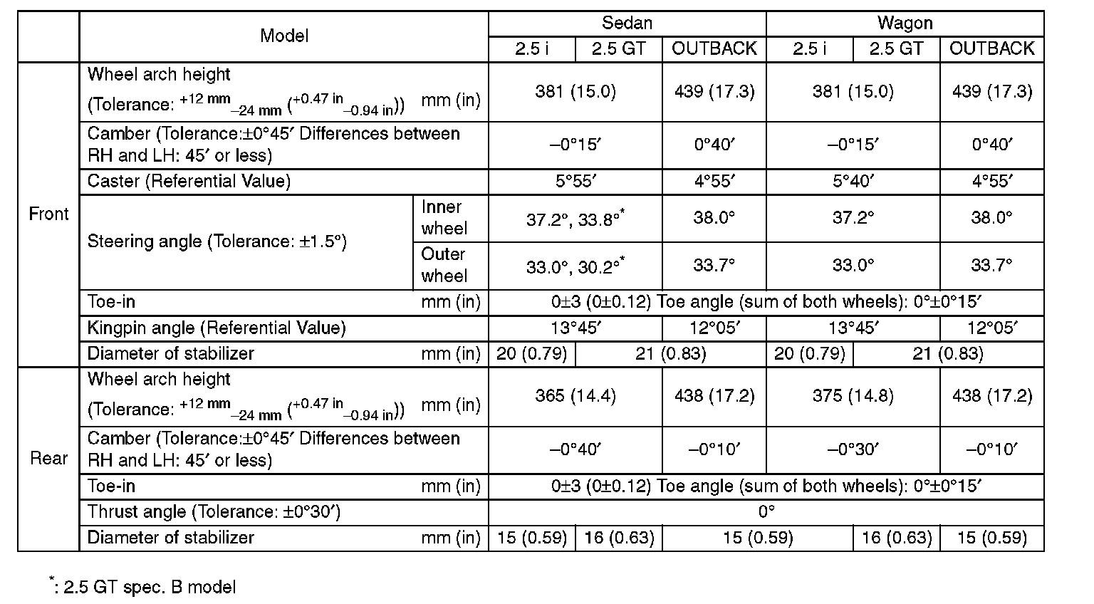 ^ Other items indicated in the specifications table cannot be adjusted. If other items exceed specifications, check suspension parts and connections for deformation, and replace with new parts as required.