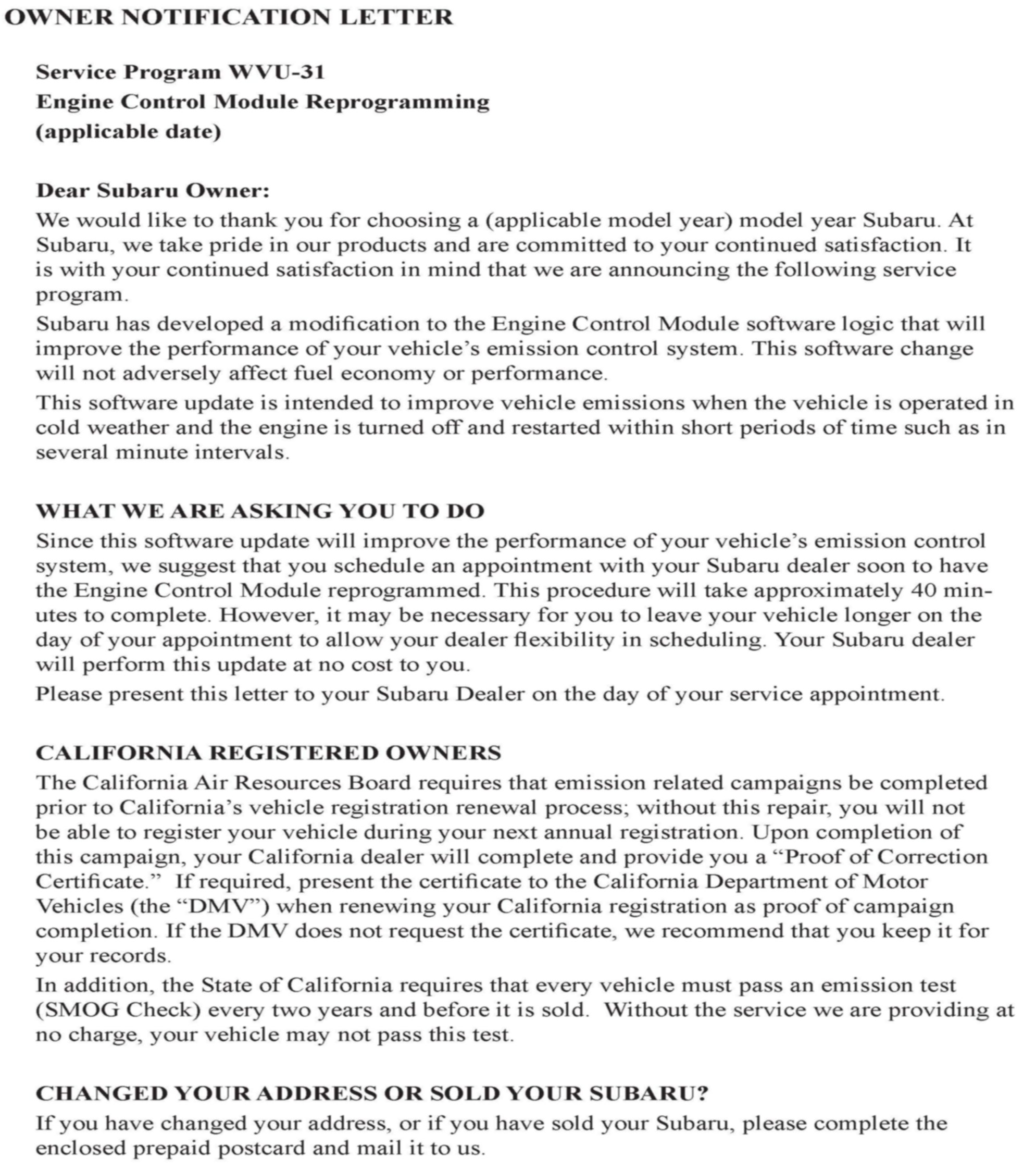 Owner Letter