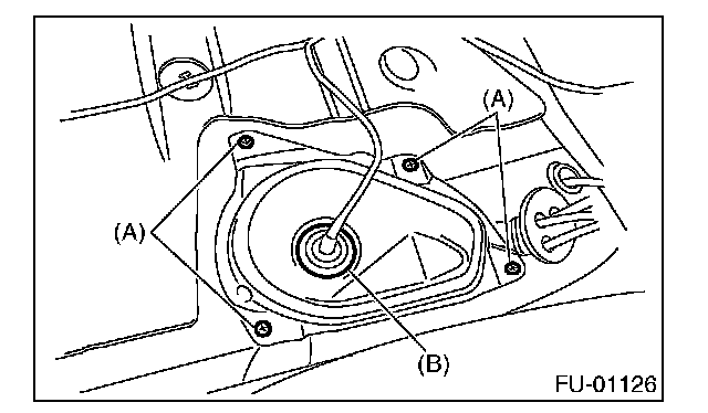 - Align protrusion (B) of the fuel sub level sensor to the cut out in the fuel sublevel sensor upper plate.