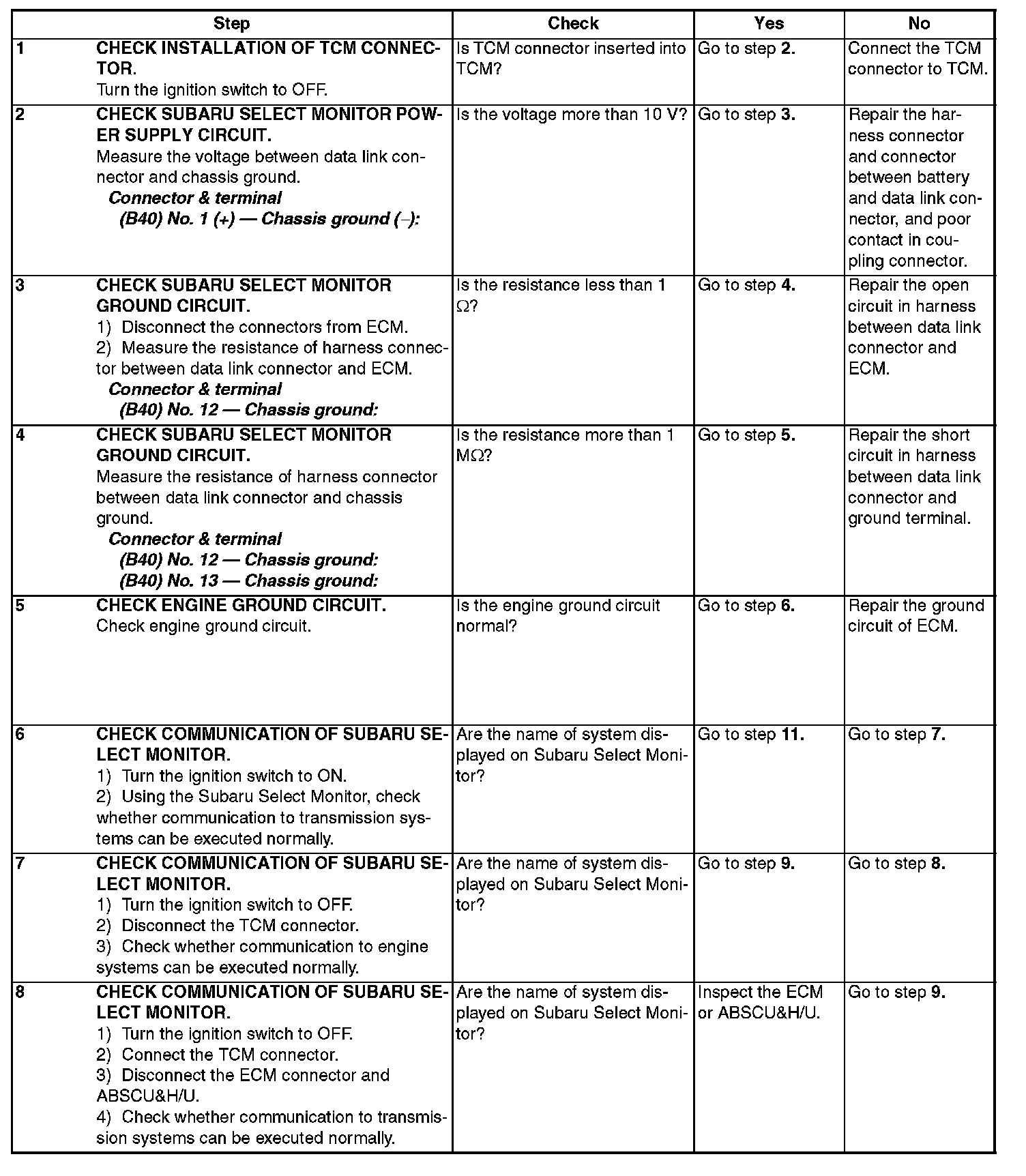 TROUBLE SYMPTOM: Subaru Select Monitor communication failure