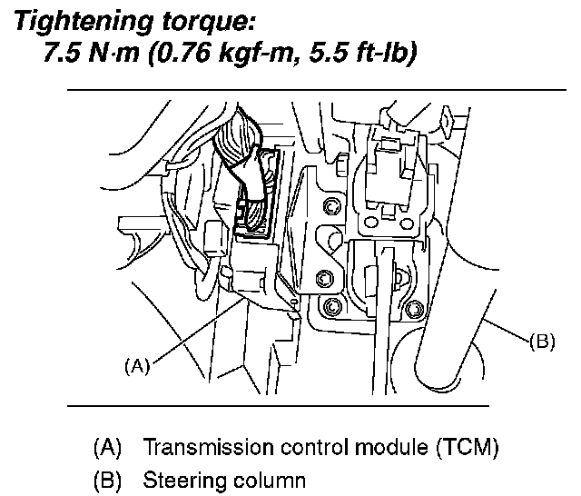 Tightening torque: 7.5 Nm (0.76 kgf-cm, 5.5 ft. lbs.)