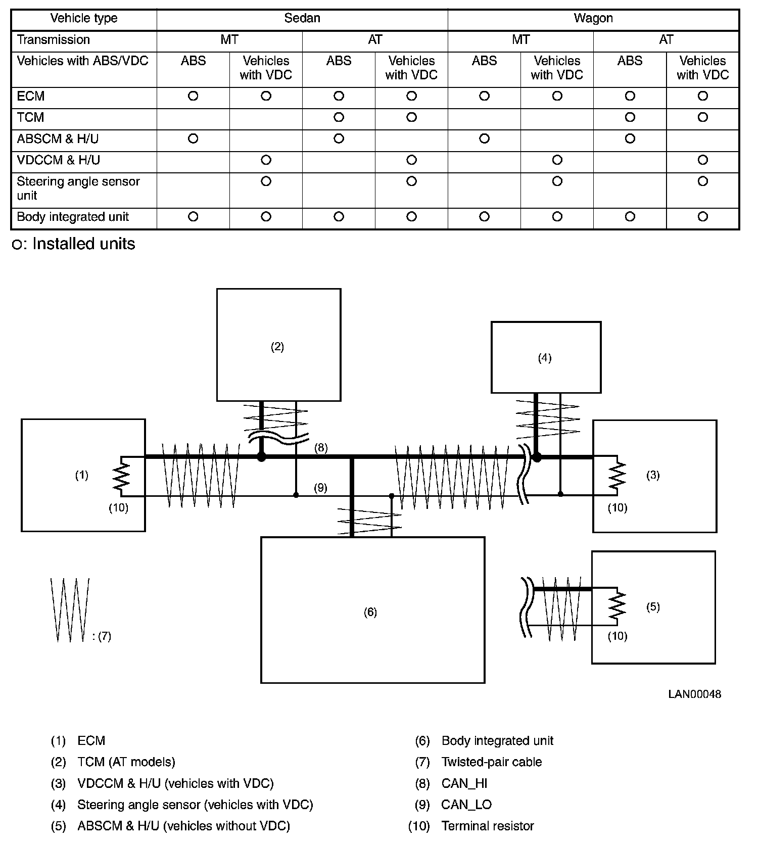 - Terminal resistors built into the ECM and VDCCM &H/U stabilize traffic on the bus, and enables signals distinction from the voltage difference between the two bus lines (CAN_High and CAN_Low). These bus lines are called the main lines. Other units are connected in parallel to the main lines. These wires are called branch lines.