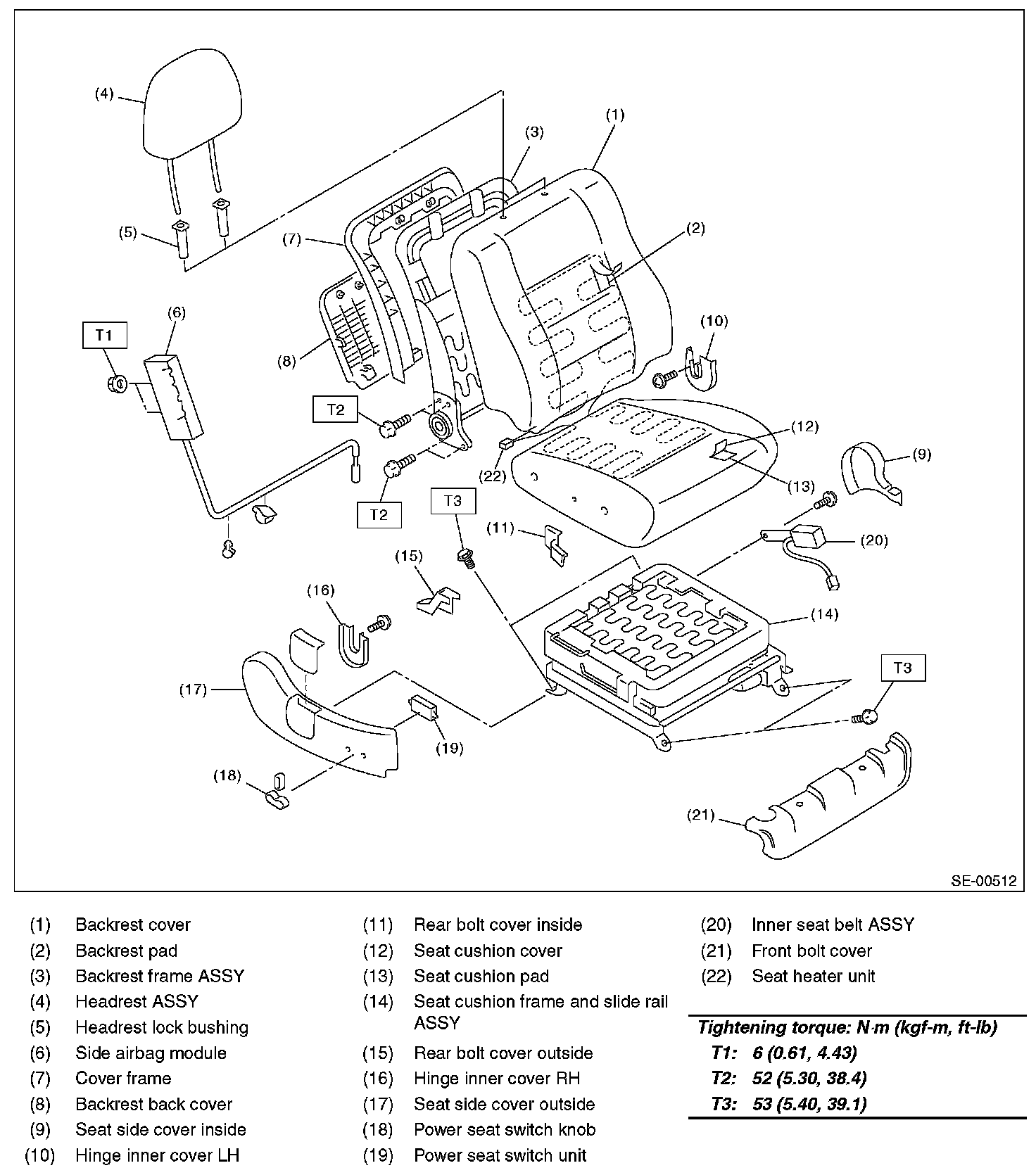 - If performing the removal of backrest, read the data of load cell sensor using Subaru Select Monitor before removing seat.