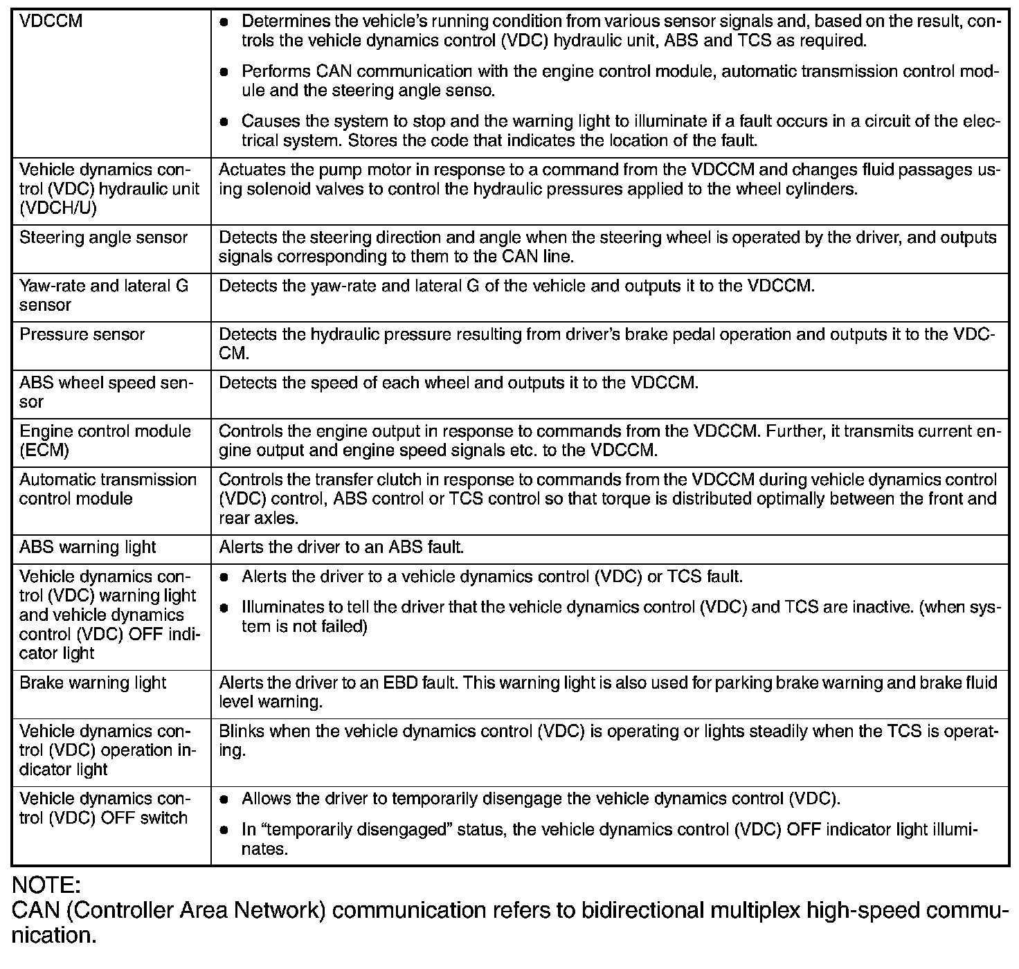 Vehicle Dynamics Control (VDC) System