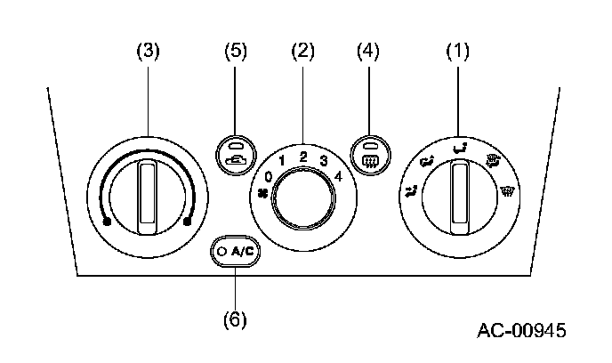 This switch allows selecting any of the five air flow modes.