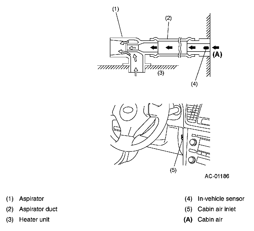 This sensor consists of an aspirator and a thermistor, the resistance of which changes in inverse proportion to the temperature. The aspirator operates by a vacuum generated in the heater unit (only when the blower unit is turned on).
