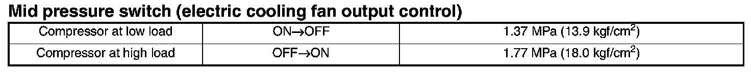 - Detects compressor load (mid pressure contact: electric cooling fan output control)