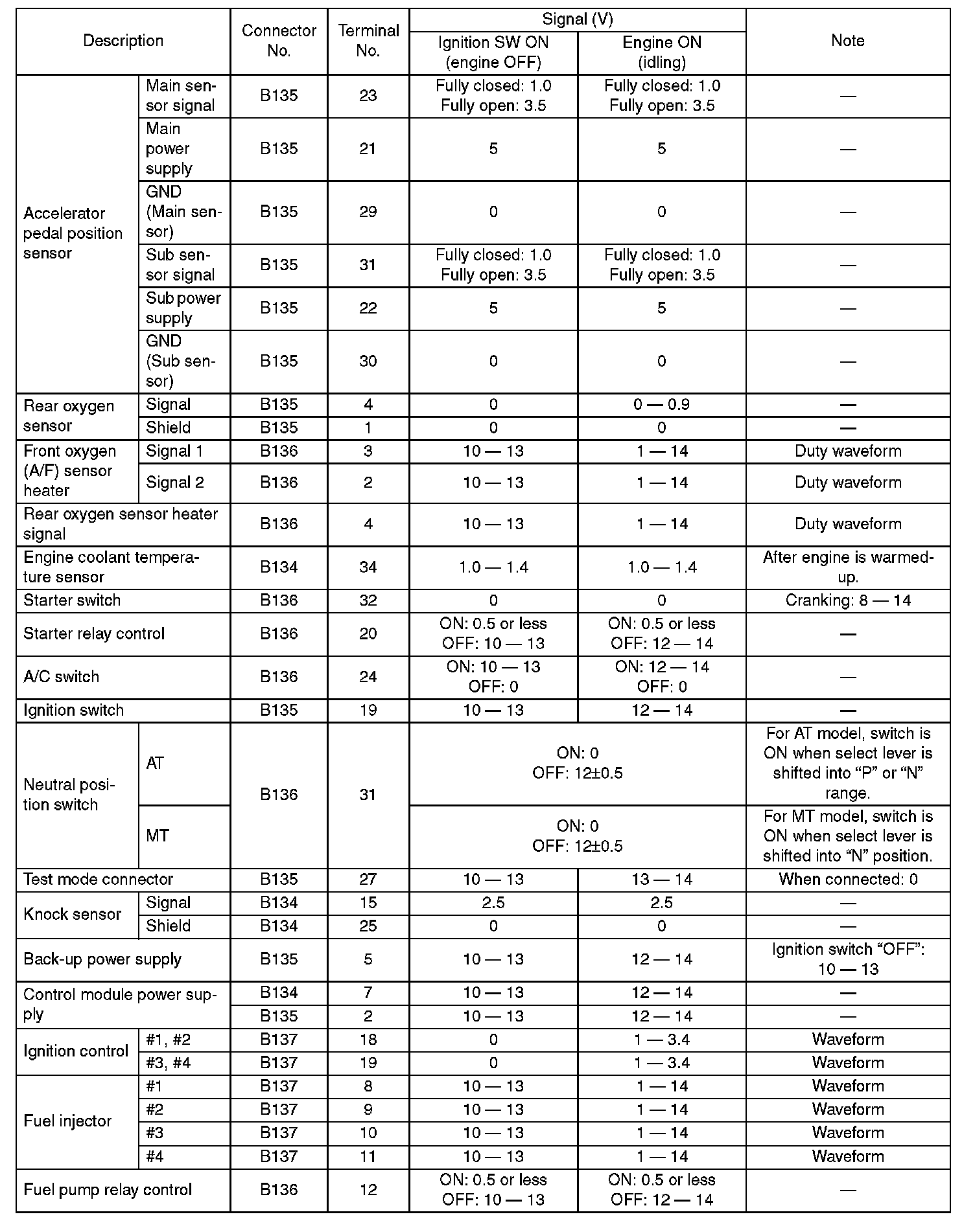Engine Control Module I/O Signal (Part 4):