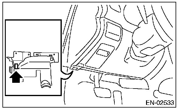 5. Connect the Subaru Select Monitor to data link connector located in the lower portion of the instrument panel (on the driver's side).