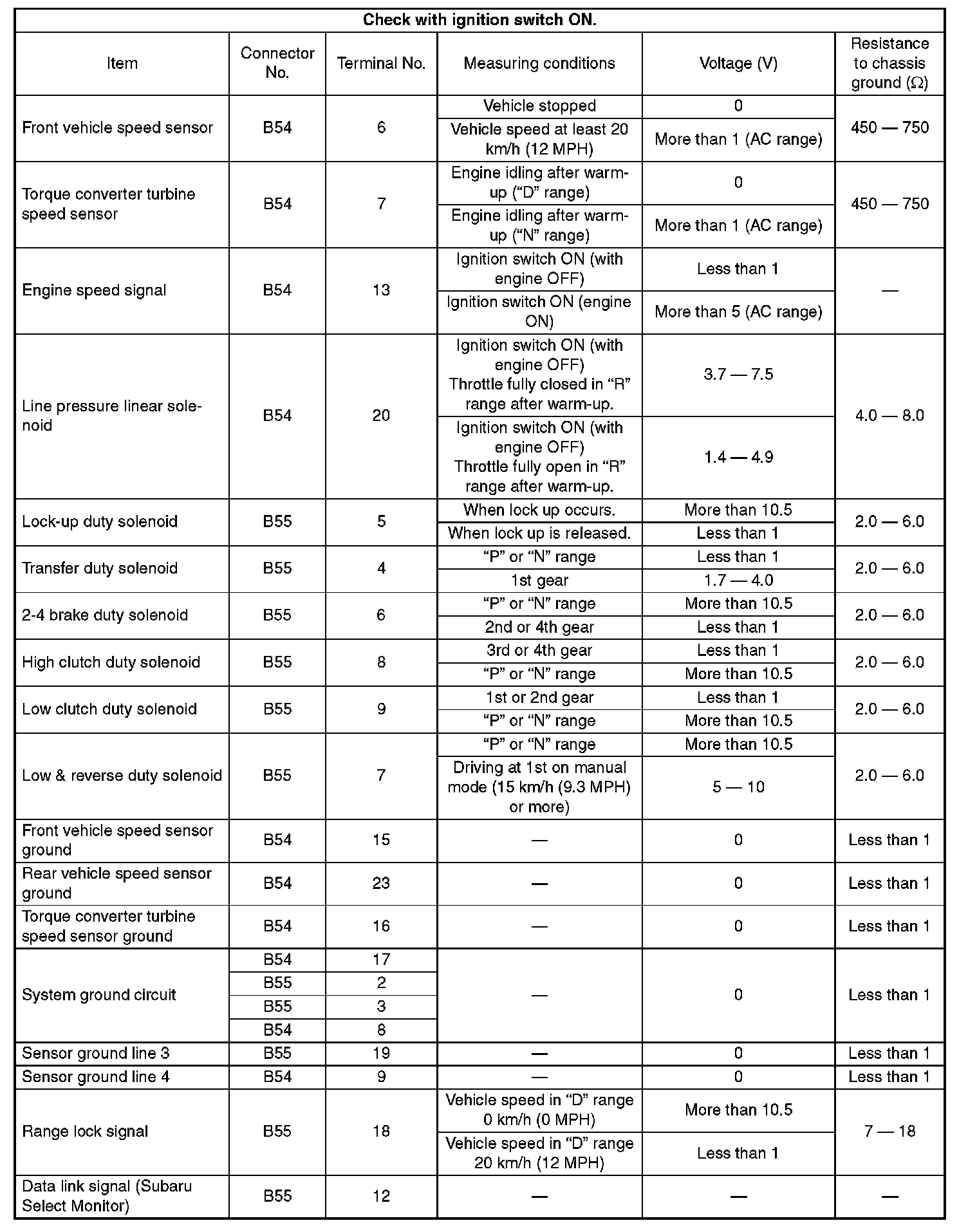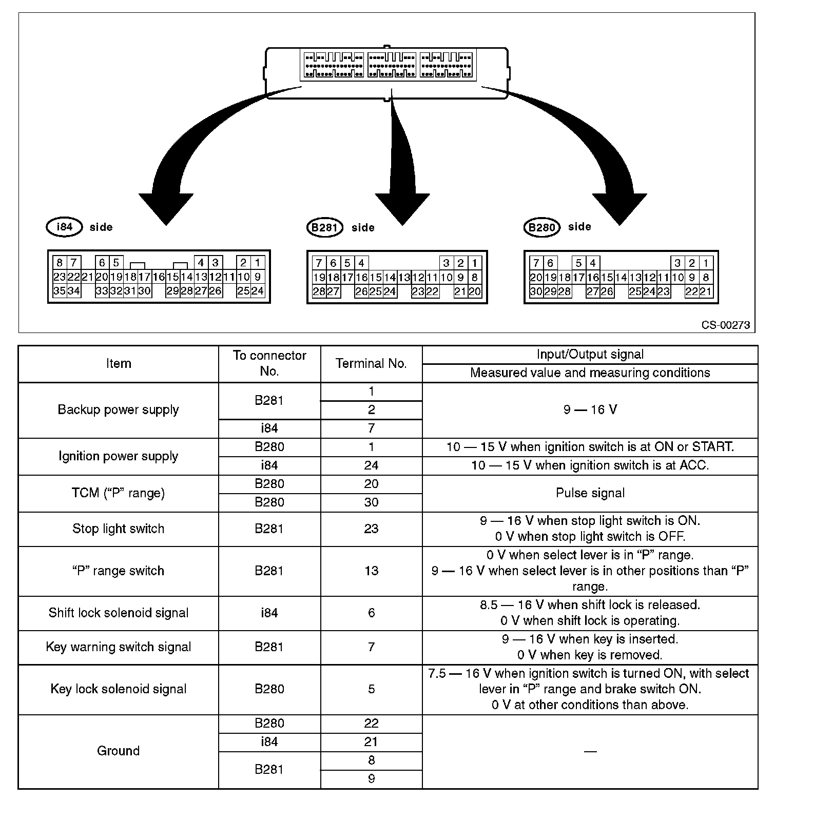 Pinout Values and Diagnostic Parameters