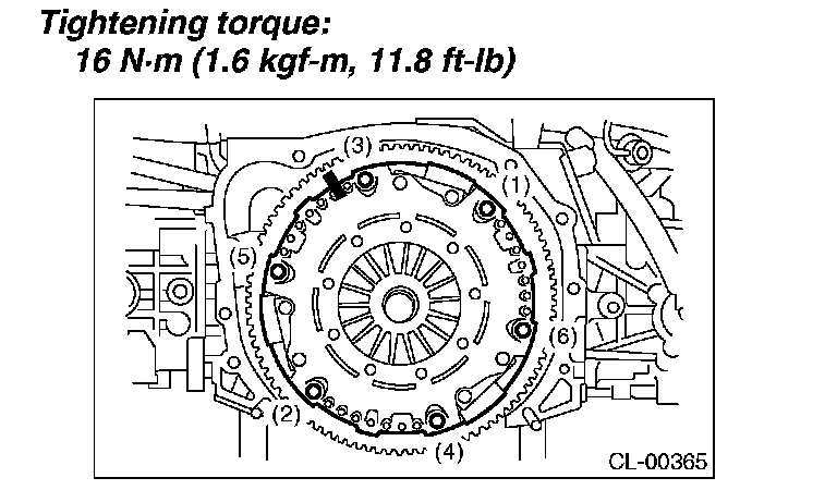 Tighten the clutch cover installing bolts gradually. Each bolt should be tightened to the specified torque in a crisscross order