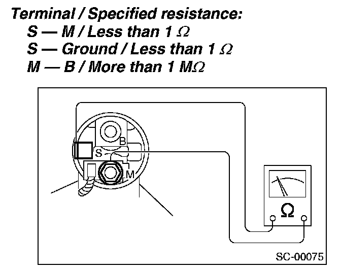 Be sure there is continuity between the terminals S and M, and between terminal S and ground. Use a circuit tester.