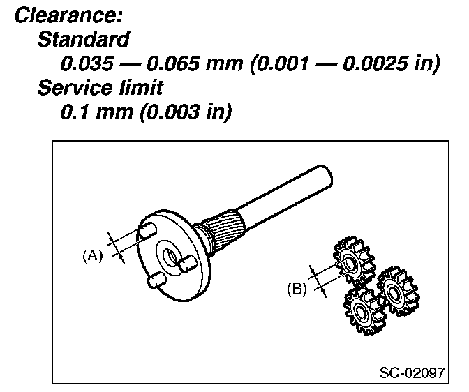 Then, measure the inner diameter (B) of planetary gear bushing, and calculate the clearance.