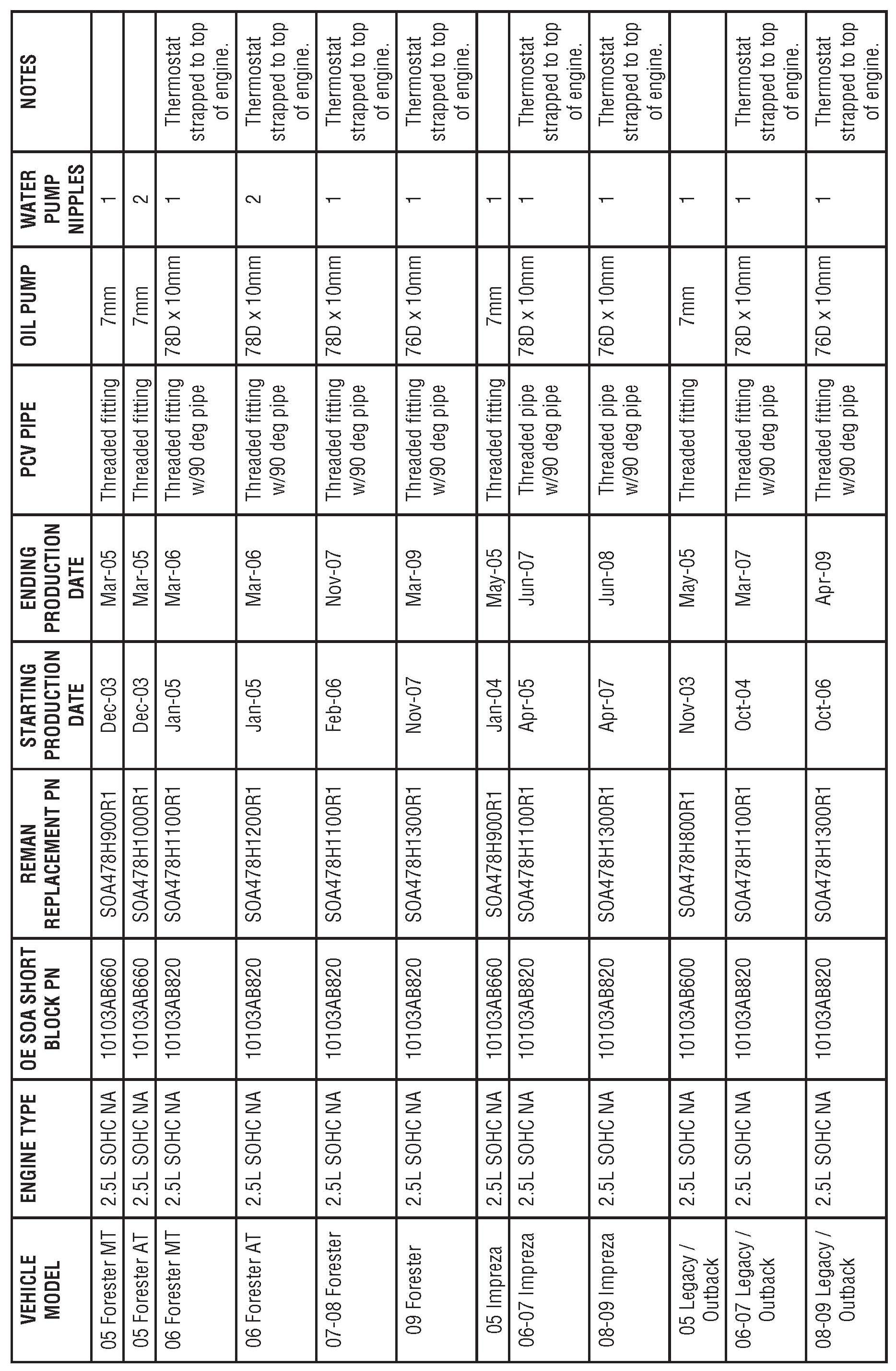 Subaru of America, Inc is making available remanufactured SOHC short blocks for use in engine repairs when the original equipment short block must be replaced, with the exception of new (in-stock) unsold vehicles These remanufactured short blocks include oil pans, water pumps, thermostats, thermostat housings, and oil pumps When compared with conventional repairs using an original equipment replacement short block, a new water pump, and new oil pump, these remanufactured short blocks provide significant savings to customers These replacement assemblies are factory tested for peak performance Each remanufactured SOHC short block is covered by the Genuine Subam Remanufactured Engine Limited Warranty for 3-year or 36,000 mile from the date and mileage of installation (whichever occurs first), the Limited Warranty for Genuine Subaru Replacement Parts, or the balance of the Subaru New Vehicle Limited Warranties (when installed by a Subaru dealer) whichever is greater.