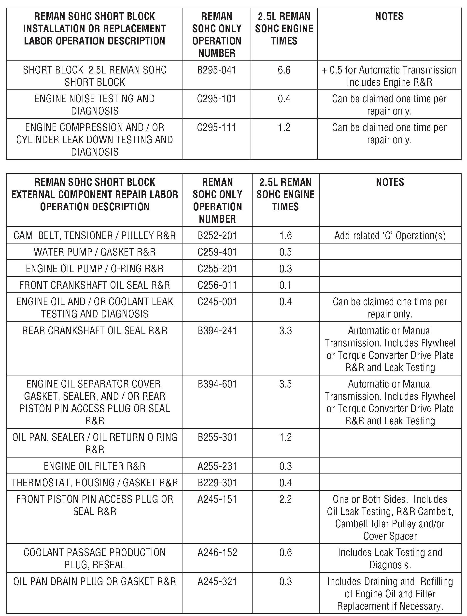 2.5L remanufactured SOHC short blocks cannot be used for repairs to new (in-stock) unsold vehicles.