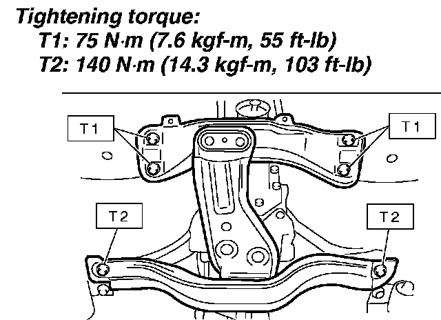 T1: 75 Nm (7.6 kgf-cm, 55 ft. lbs.)
