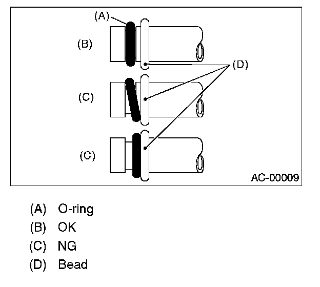 - In order to keep the O-rings free of lint which will cause a refrigerant gas leak, perform operations without gloves and cloth.