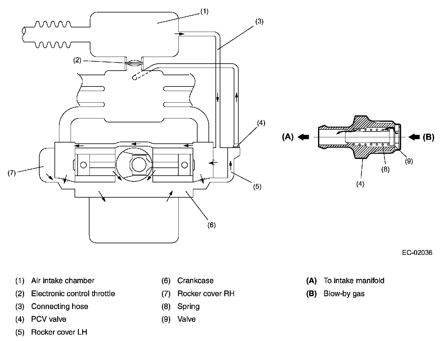 Crankcase Emission Control SystemThe positive crankcase ventilation (PCV) system prevents air pollution that will be caused by blowby gas being emitted from the crankcase.