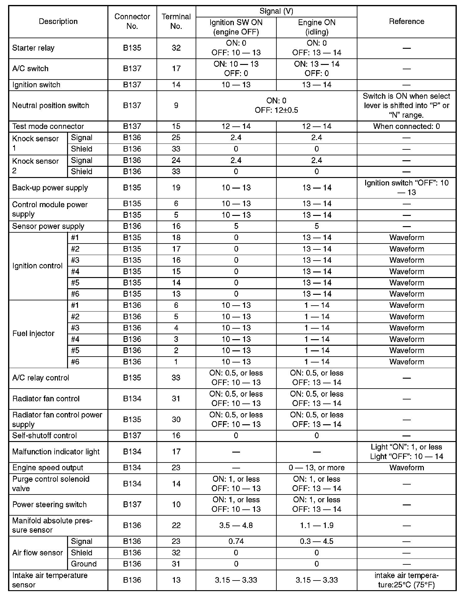Engine Control Module (ECM) I/O Signal (Part 4):
