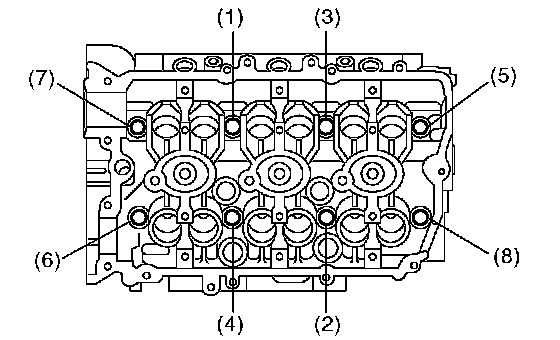 Tighten the bolts with torque of 50 Nm (5.1 kgf-m, 37 ft. lbs.) in numerical sequence as shown in the figure.