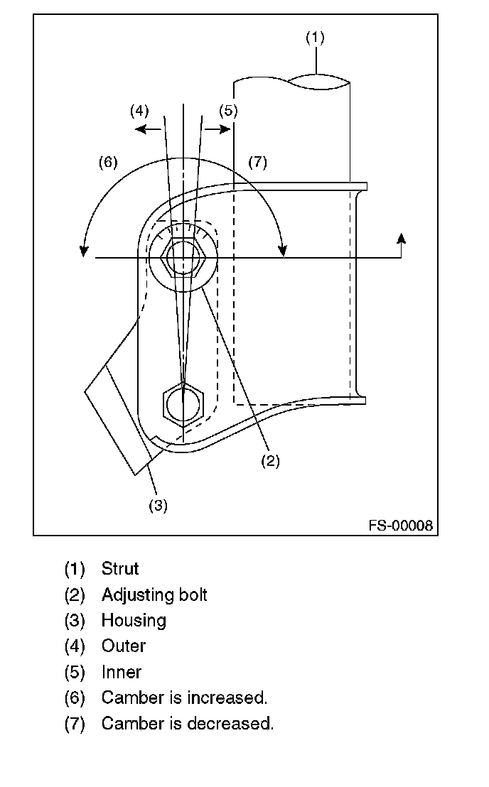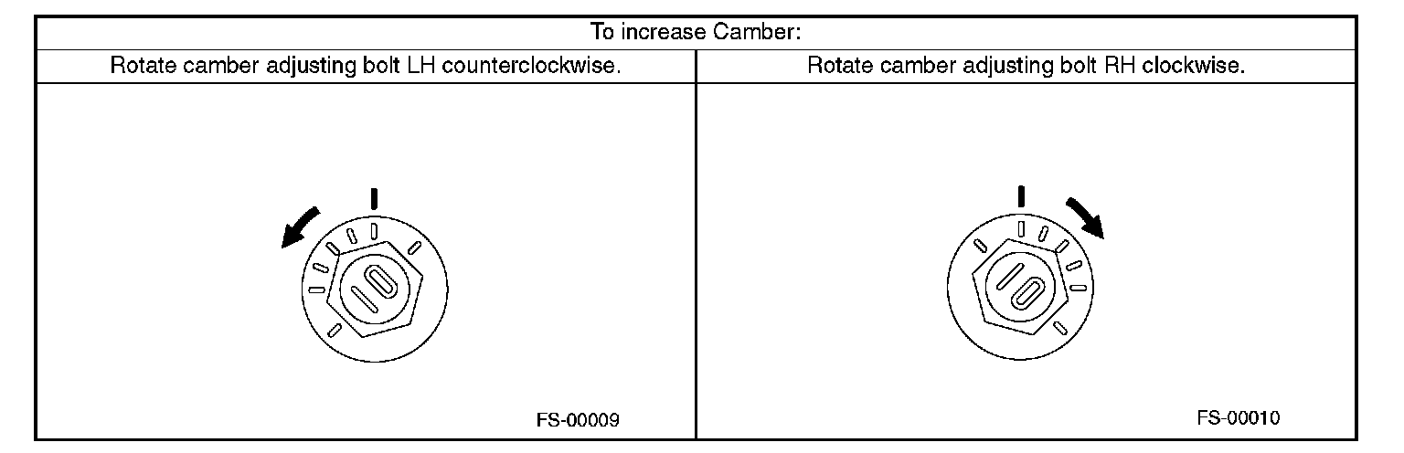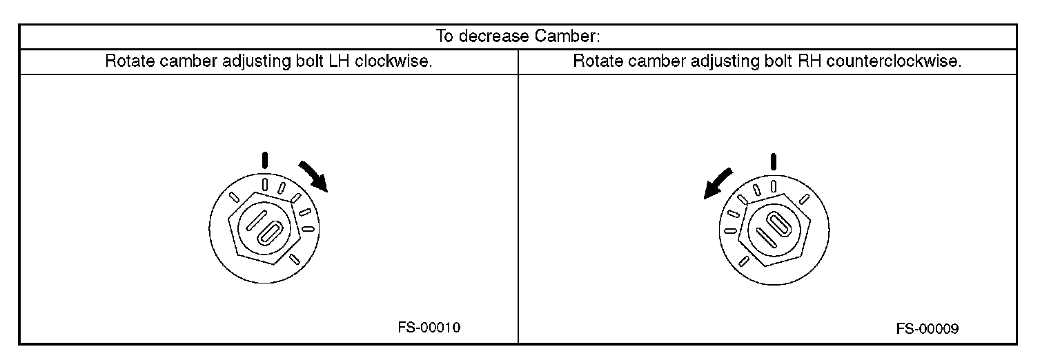 2) Turn the camber adjusting bolt so that camber is set at the specification.