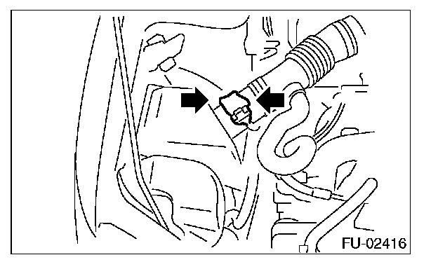 2. Disconnect the connector from mass air flow and intake air temperature sensor.
