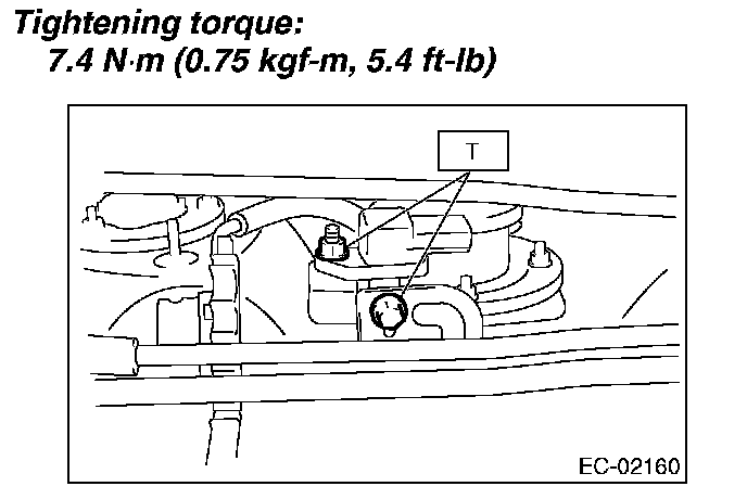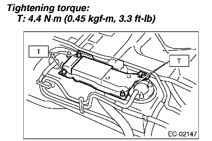 5. Remove the nuts and bolts which install the fuel tank pressure sensor on bracket.