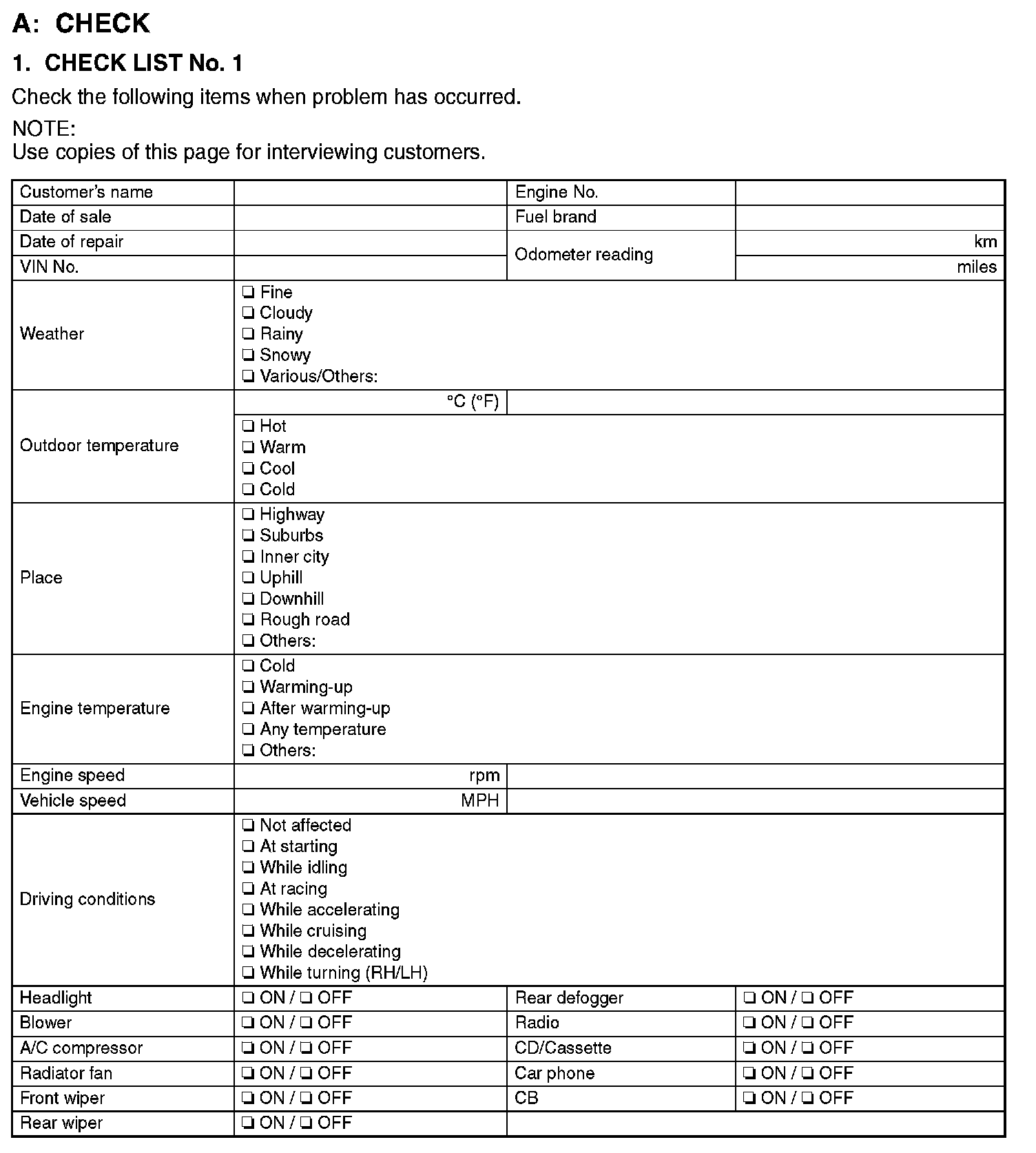 Check List No.1: