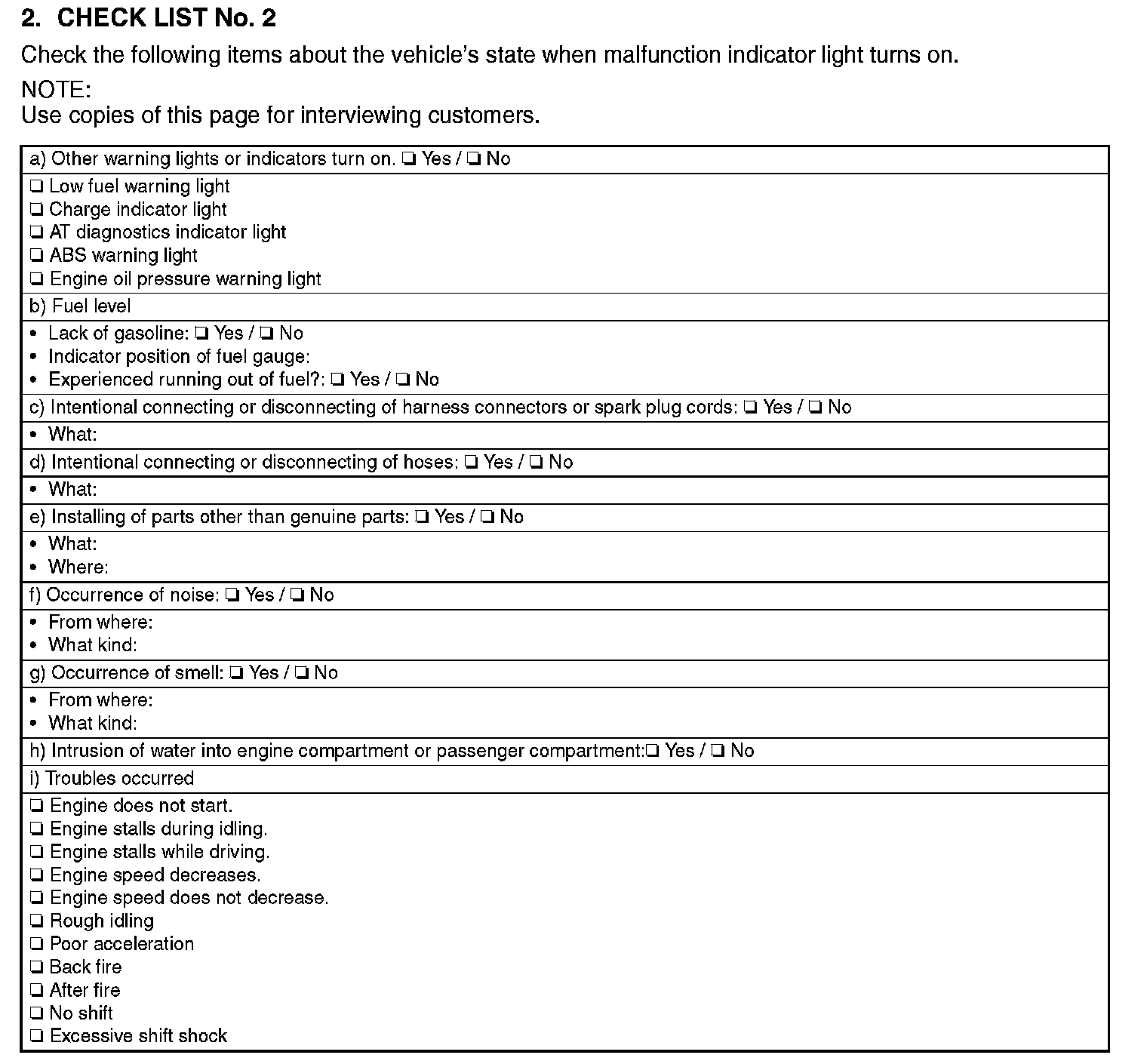Check List No.2: