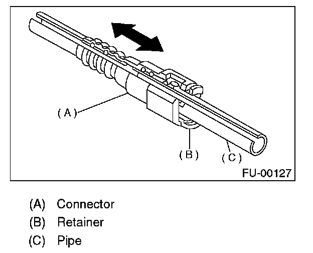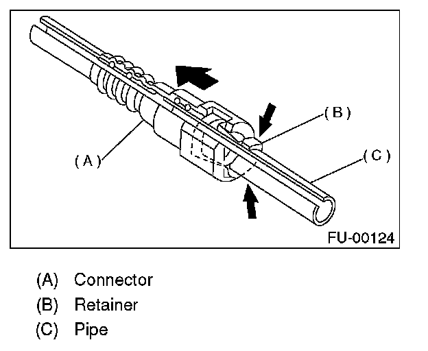 1. Separate the quick connectors of fuel delivery line by pushing the ST to the direction of arrow.