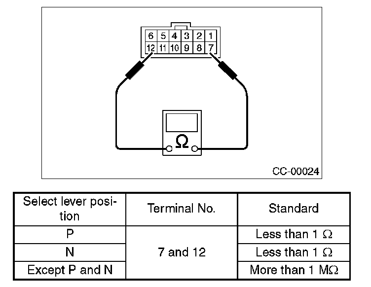 If NG, replace the inhibitor switch.
