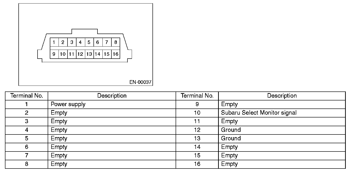NOTE This connector is used for Subaru Select Monitor.