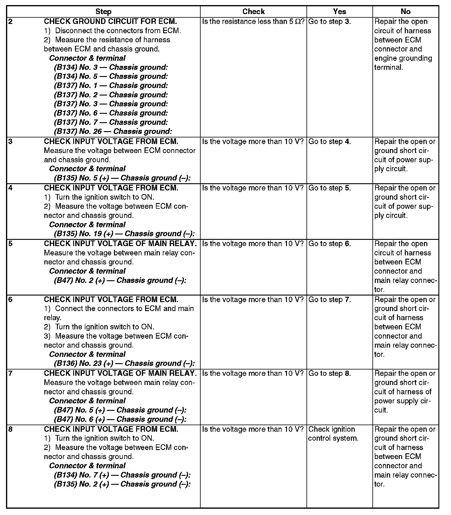 Check Power Supply and Ground Line of Engine Control Module (ECM)