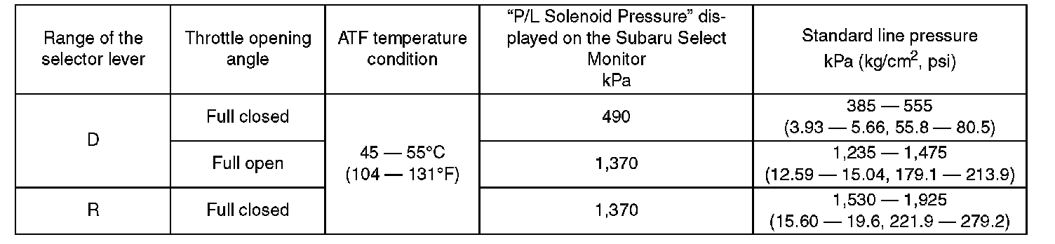 ^ After performing the line pressure test, be sure to cool down the engine for at least one minute with the select lever set in P or N range and with the idle speed at 1,200 rpm or less.