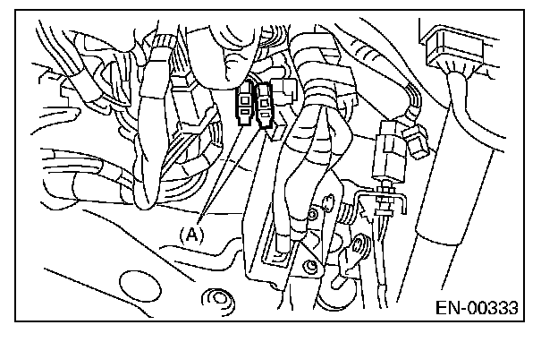4. Connect the test mode connector (A) located at the lower portion of instrument panel (on the driver's side).
