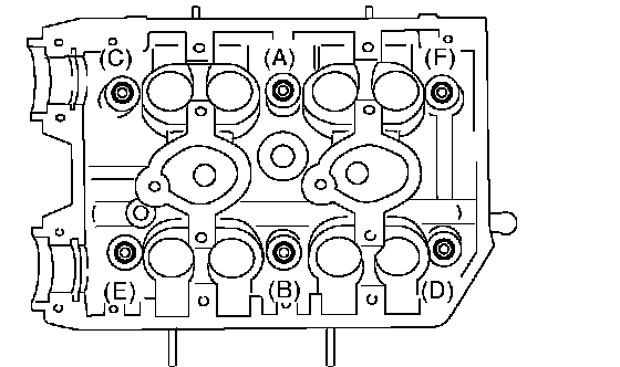 Tighten all bolts to 49 Nm (5.0 kgf-m, 36 ft. lbs.) in alphabetical sequence.