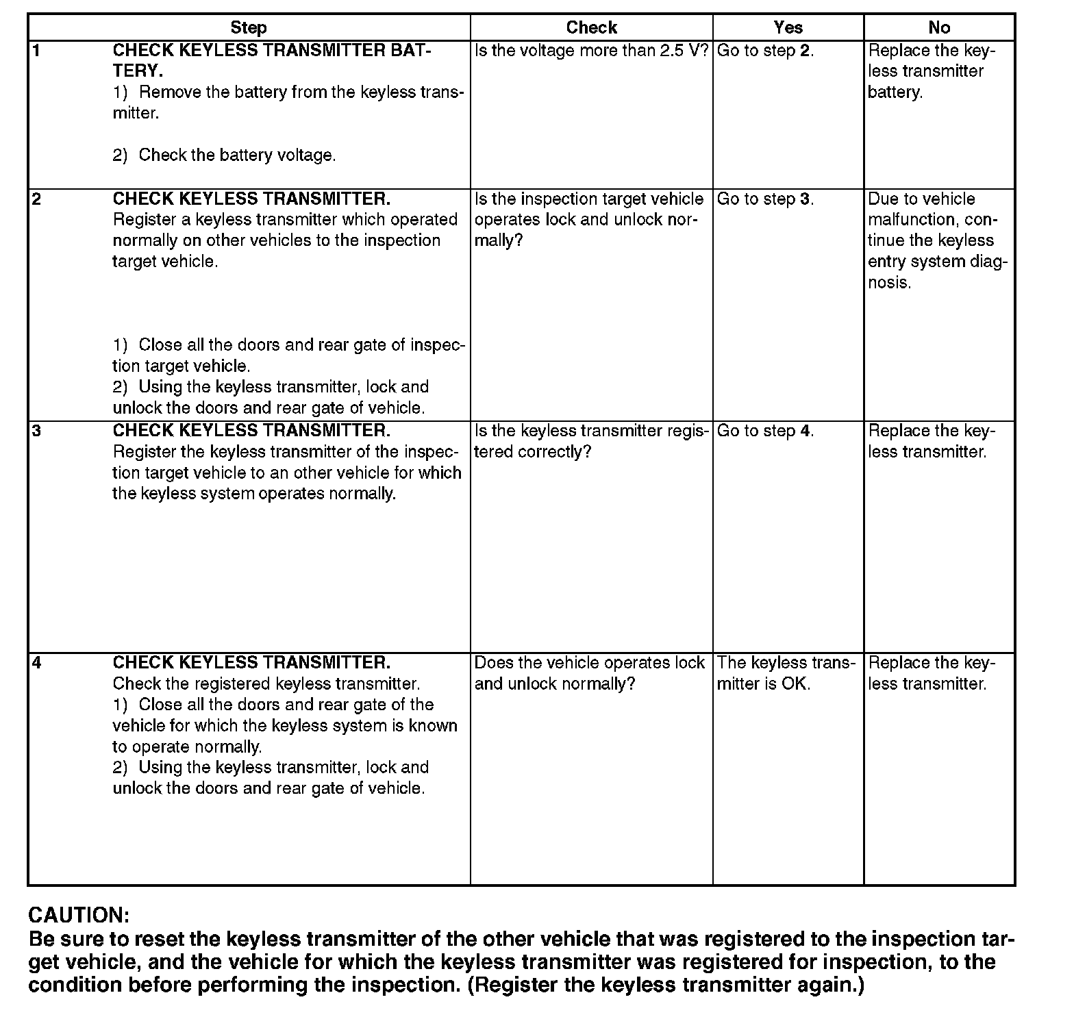 Check Keyless Transmitter Battery and Function